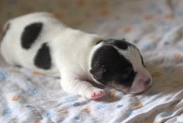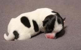 Queeny hat für die Geburt der sieben Welpen ca. 3 Stunden benötigt.